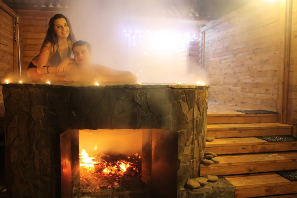 Ми перші, хто побудував у Києві громадську лазню із закарпатськими чанами на березі річки з дотриманням усіх правил. Рекомендуємо паритись до 6 людей та бувають компанії до 8 (20) осіб. Вогонь, що палає створює теплу природню атмосферу. Ресторація в Бухті Афродіти пригостить після активної та незвичайної процедури купання в чані.
